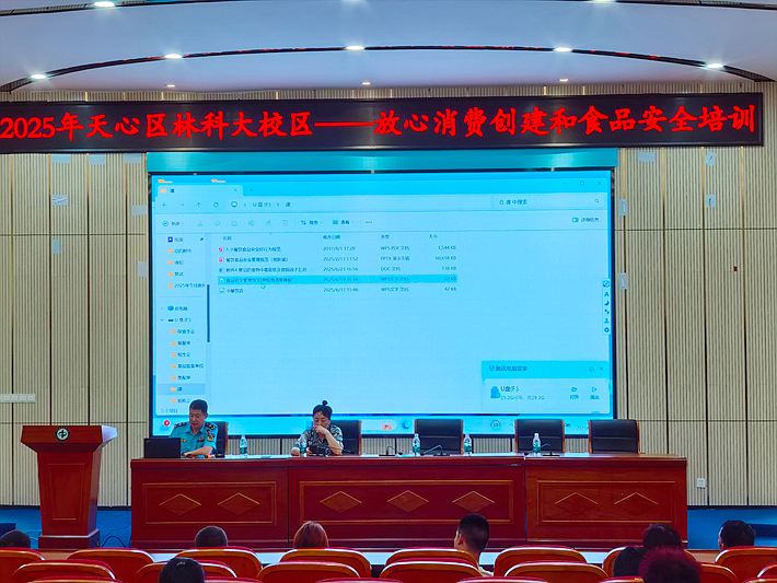 为进一步提升学校经营性商铺的食品安全及消防安全防范能力,6月25日下午,资产经营公司在东园林学院报告厅举行商铺食品安全及消防安全主题讲座。会议邀请了天心区文源市场监督管理所所长贺跃斌、湘安消防中心狄玉龙进行授课。会议由经营性资产管理科科长欧阳达主持。
